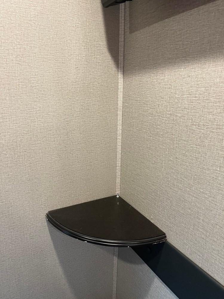 Our next mod has gone through several iterations and currently is very effective and that is the desk space we use in the office. We took out the Happy Jack benches and secured a desktop, purchased at Amazon, to the brackets on the driver’s side of the rig using the same hardware that secured the benches. We chose that side of the rig because it is a longer wall and allowed for more desk space. You can buy these desk tops on Amazon in varying lengths to fit what works for you.