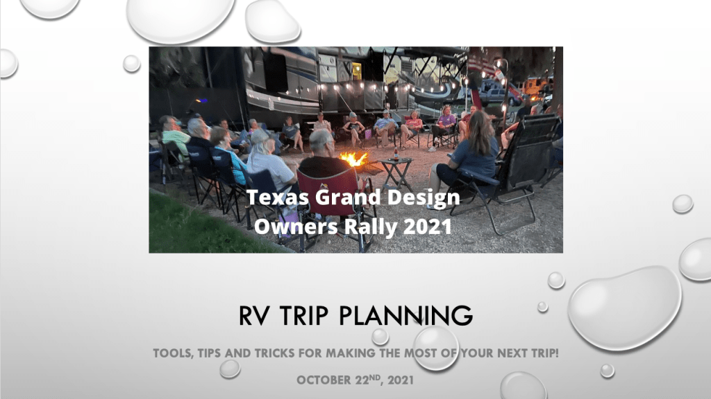 Hey there Grand Design Family! What an awesome Texas Grand Design RV Owners Rally we just experienced and what a treat it was for Team Jacobus to be able to present the seminar RV Trip Planning to our fellow Grand Design Owners!