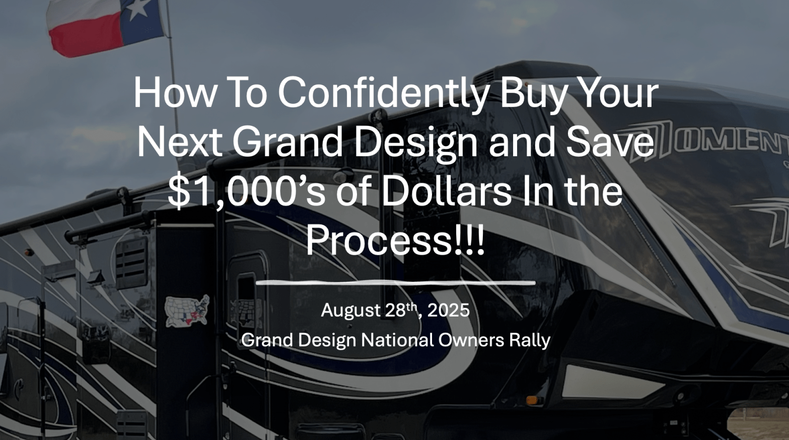 What a blast it was to share “How To Confidently Buy Your Next RV and Save 1,000’s!” at the 2025 Grand Design National Rally. Christie and I always enjoy connecting with fellow RVers, and this session was no exception! Buying an RV should be exciting, not stressful—and with the right knowledge, tools, and mindset, youContinue reading “How to Confidently Buy Your Next RV (and Save Thousands!)”